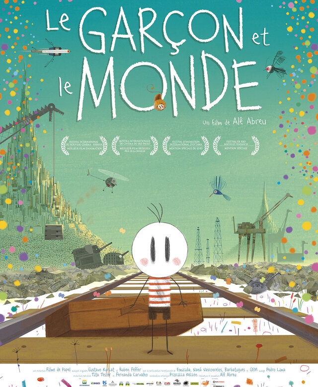 Un petit garçon quitte son village et part à la recherche de son père. Comme une Odyssée dans l’autre sens, il traverse différents mondes où le merveilleux fait face à l’immensité de la ville et la cruauté du monde du travail. Véritable carnaval de couleurs, le dessin unique en son genre laisse apparaître la matière, les coups de crayons et les aplats de couleurs pour un résultat vivant et inspiré. La musique omniprésente et le rythme ne trahissent pas les origines brésiliennes de ce film, auréolé de nombreux prix, notamment à Annecy. Un voyage lyrique et onirique illustrant avec brio les problèmes du monde moderne à travers le regard d’un enfant.