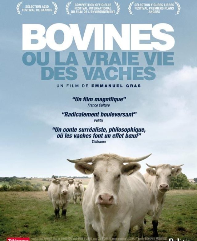 Dans les champs, on les voit, étendues dans l’herbe ou broutant paisiblement. Grosses bêtes placides que l’on croit connaître parce que ce sont des animaux d’élevage. Lions, gorilles, ours ont toute notre attention, mais a-t-on jamais vraiment regardé des vaches ? S’est-ont demandé ce qu’elles faisaient de leurs journées ? Que font-elles quand un orage passe ? Lorsque le soleil revient ? A quoi pensent-elles lorsqu’elles se tiennent immobiles, semblant contempler le vide ? Mais, au fait, pensent-elles ? Au rythme de l’animal, au milieu d’un troupeau, "Bovines" raconte la vie des vaches, la vraie.